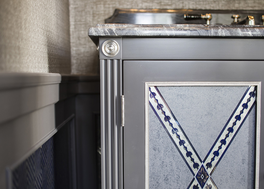 A special gilding service is verre églomisé, an ancient technique of applying gold leaf designs on the reverse side of glass, producing exceptionally rich and jewel-like results.